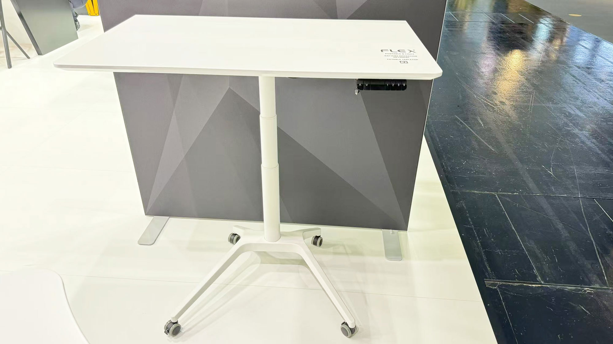 比如,在展會現(xiàn)場我們呈現(xiàn)的單柱可移動升降桌,具有靈活可移動的優(yōu)勢,不僅可以根據(jù)使用者的需求自主調(diào)節(jié)改變桌高實(shí)現(xiàn)坐站交替辦公,還能輕松移動至多種應(yīng)用場景來改變工作環(huán)境,適合小組之間的臨時性溝通協(xié)作辦公以及在居家環(huán)境辦公使用。