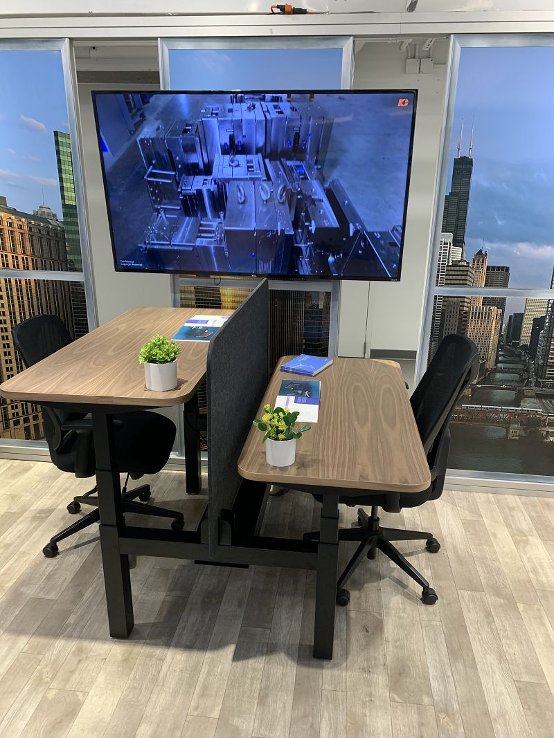 2022年美國芝加哥辦公家具展于6月13日至15日在芝加哥商品市場舉辦,凱迪股份北美銷售團(tuán)隊攜智能升降桌解決方案亮相展會現(xiàn)場。